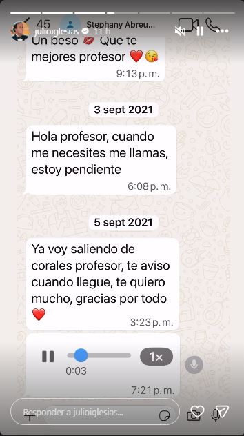 En uno de los mensajes del 20 de abril de 2021 que atribuye a sus trabajadores se lee: “Profesor buenas noches, espero puedas dormir sin malestar, sueñes con los angelitos y puedas descansar, te quiero mucho y si necesitas algo de mi aquí estoy a tu entera disposición, gracias por tu paciencia y tus enseñanzas del día de hoy, todos los días a tu lado son valiosos para íi porque aprendo un poco más (añade un corazón) un beso y un abrazo!. Feliz noche”.