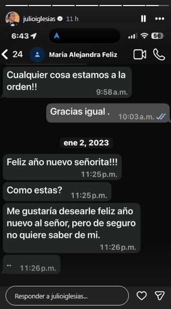 El cantante español Julio Iglesias publicó en su perfil de Instagram varios mensajes que supuestamente recibió desde WhatsApp de las trabajadoras que lo denunciaron por agresión sexual con los que parece querer demostrar su inocencia.